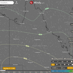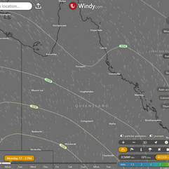 Monday: Mainly cloudy in South interior, clear elsewhere. Light to moderate winds from southeast to southwest, shifting to west-southwest in southeast Queensland. Weak sea breeze on east coast north of Mackay in afternoon.