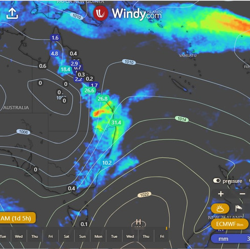 Maroochydore | ๐ง | 21 | 25 | Rain. Possible storm. |