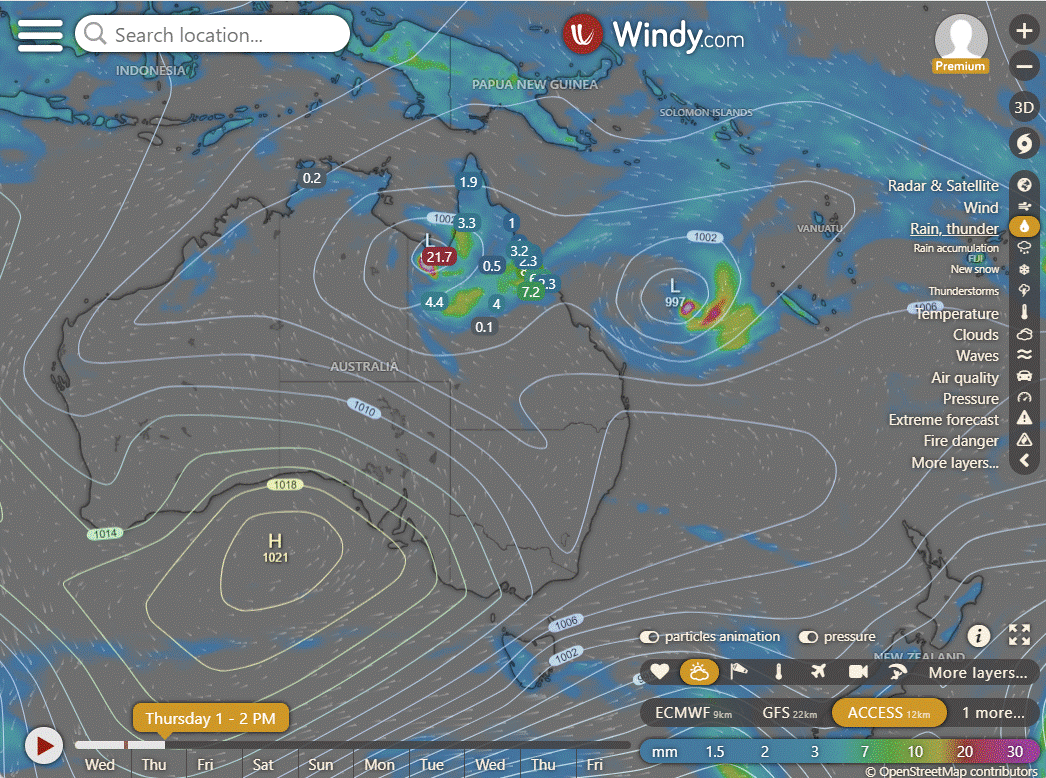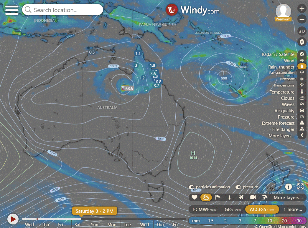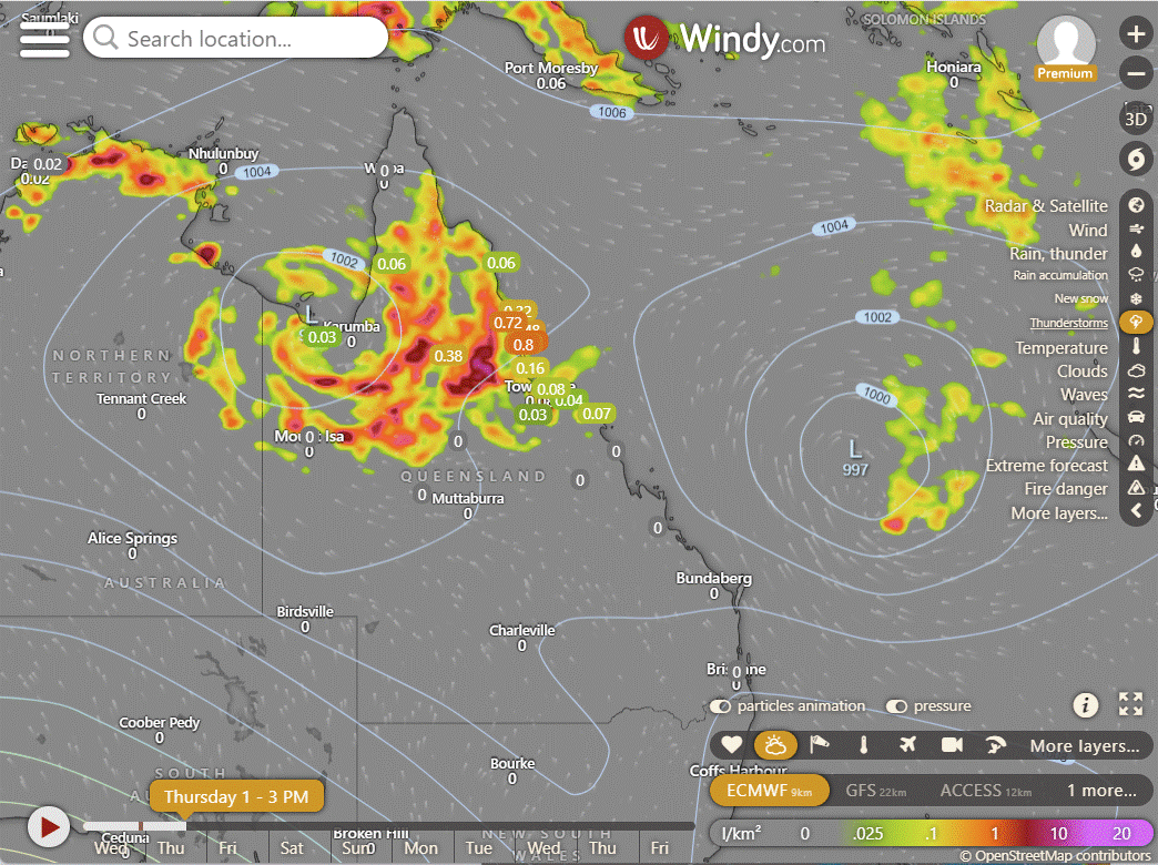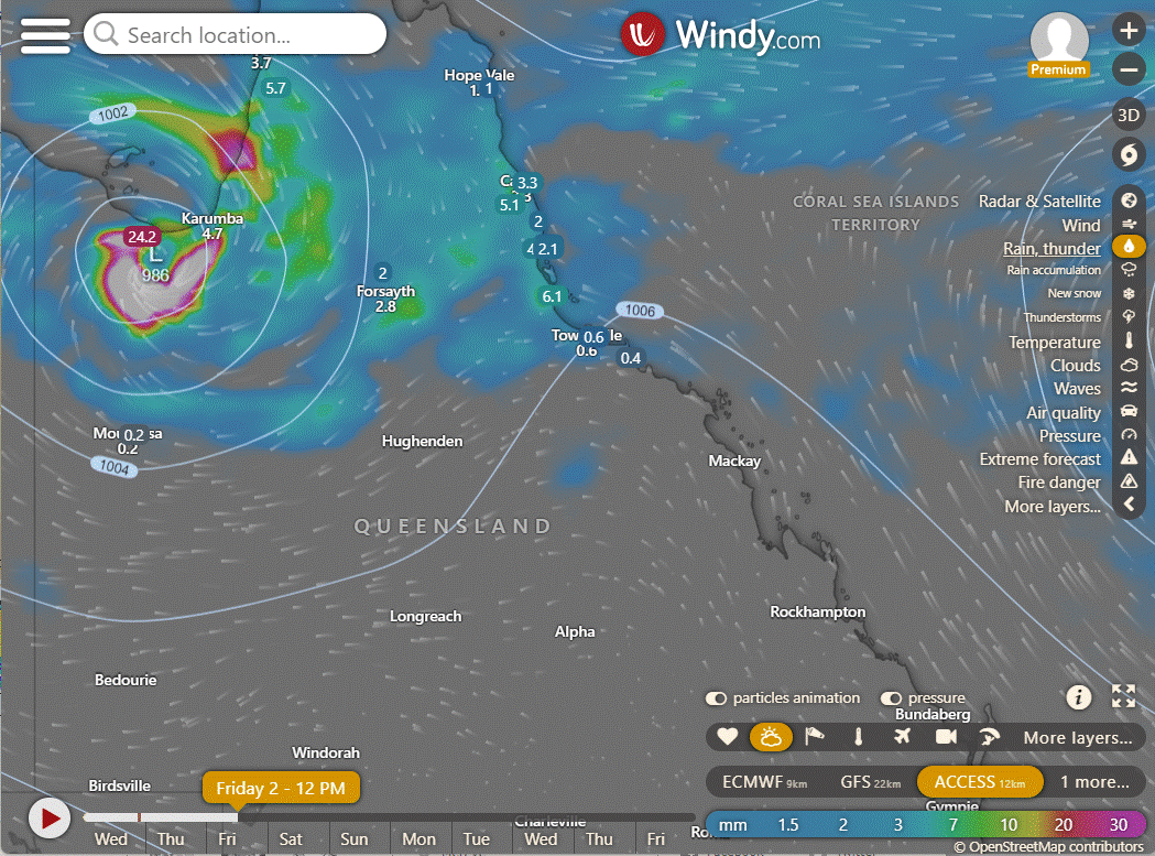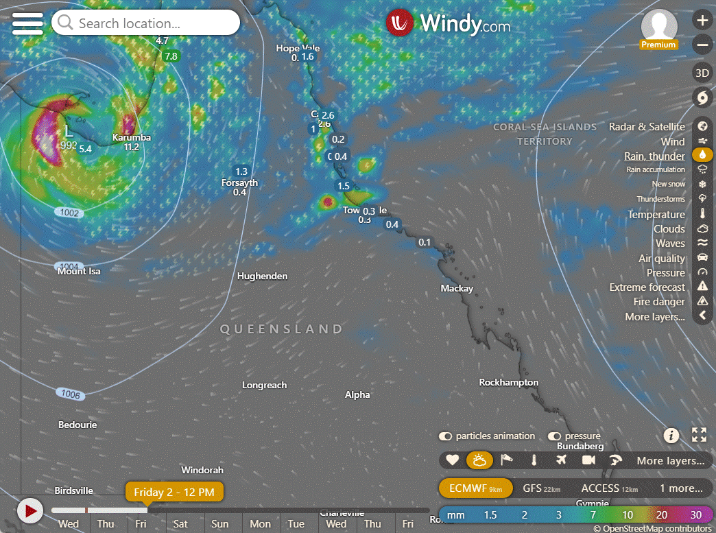 The movement of Ex TC Kirrily showing below with the 3 major models. The intensity is the main factor. But the NW should expect heavy rain that could lead to flooding. We still can't look more than 2 days ahead with this, the models change a lot between Friday and Saturday. There is an interplay between the new ECL 06U off the coast of QLD and Ex TC Kirrily which means they will influence each other. Not sure how yet.