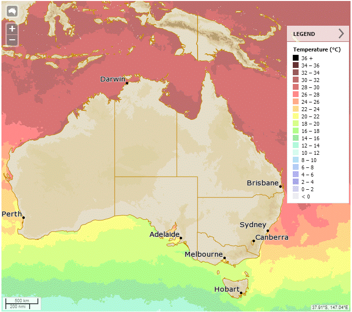 Maximum temperature: low to mid 30s; Minimum temperature: 19-24; Wind speed: southeasterly 15-20 km/h becoming light before dawn then becoming southeasterly 15-25 km/h in the morning; Wind direction: southeasterly; Rainfall: Mostly sunny; Other: Overnight temperatures falling.
