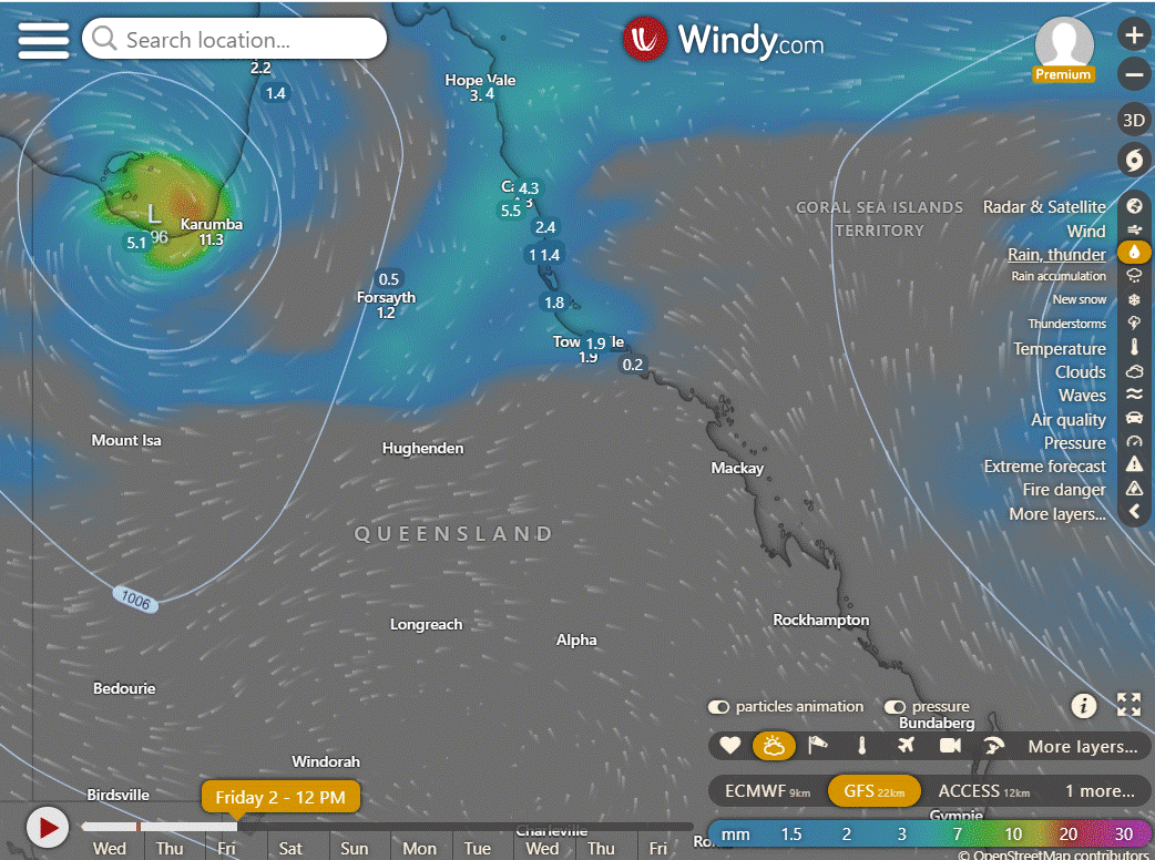 Ex TC Kirrily is about to kick back up a gear and the rain will become heavy over the NW of QLD for the next 4 days at least.