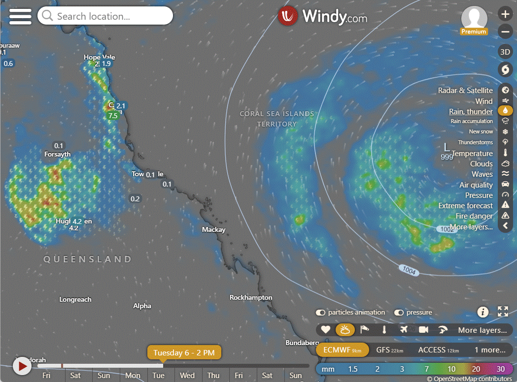 While Ex TC Kirrily looks impressive still, our eyes are shifting now to the East Coast Low starting to move into warmer waters and possibly then moving towards the QLD coast. The current models 4 days out are now closely in alignment, where earlier in the evening of Friday they were not. We will watch this but not be concerned too much until we see it possibly crossing the QLD coast with model alignment.