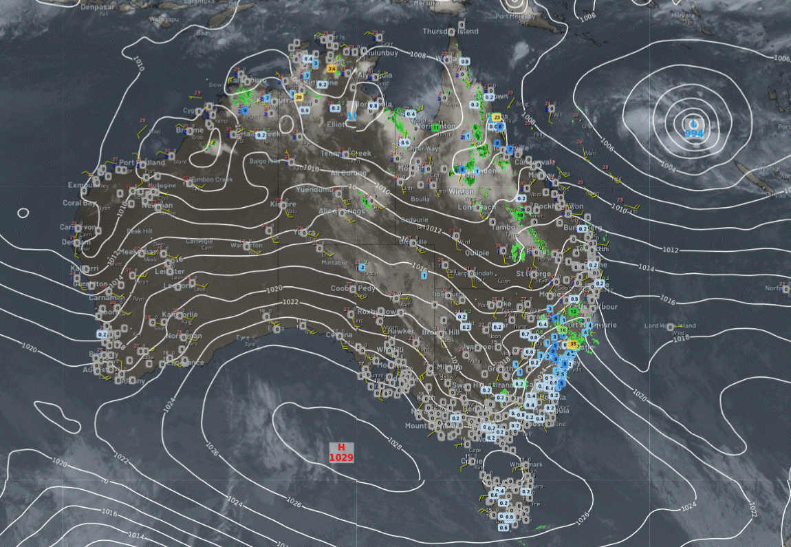 Troughs will generate showers and storms over the northern tropics, the NT interior, and Queensland. Onshore winds will bring showers into southeast Queensland and northeast New South Wales. High pressure is expected to keep much of Tasmania, Victoria, South Australia, and Western Australia dry and mostly settled.