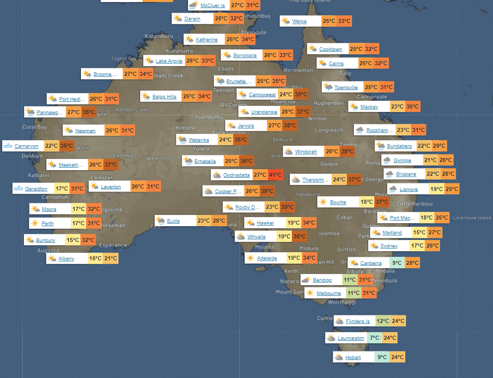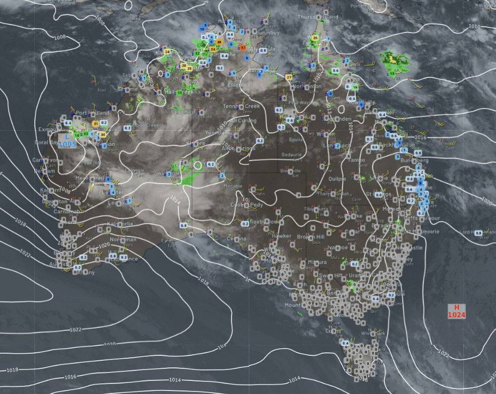 Thursday: Weather outlook: Sporadic showers and thunderstorms in the north, scattered showers in the east and widespread showers along the North Tropical Coast. Mostly sunny elsewhere with above-average temperatures in the southwest and near average elsewhere.